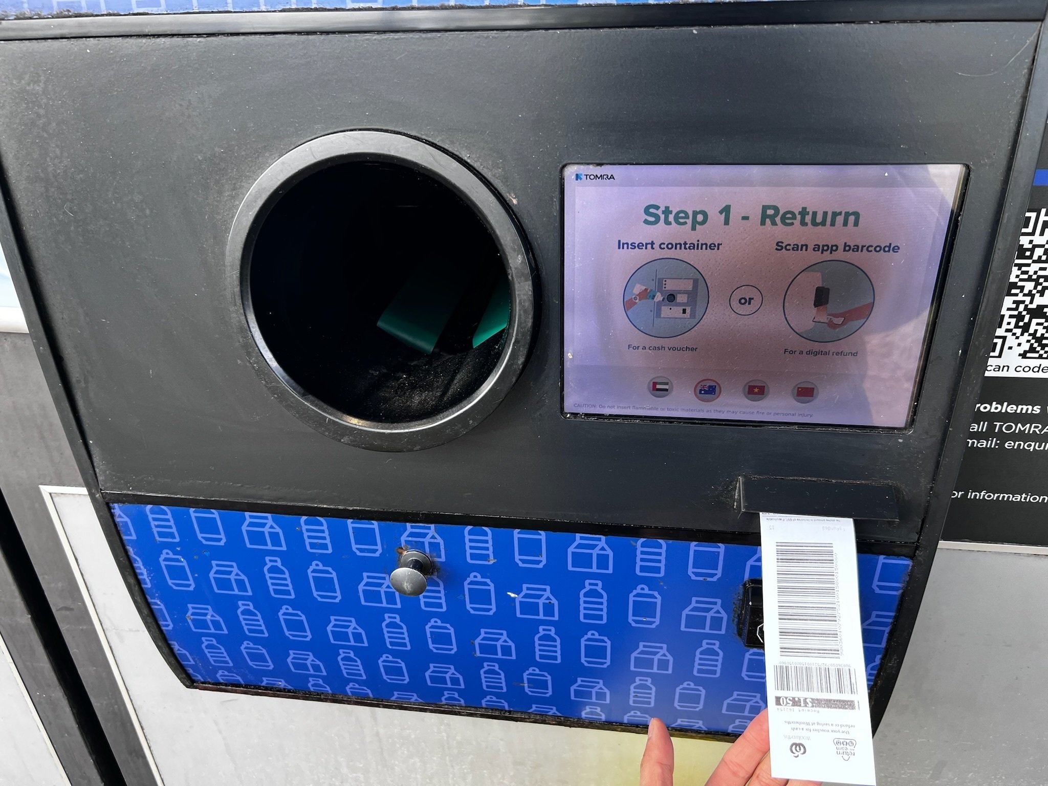 対象の空き容器をマシンにいれると1本あたり10セントの割引券がもらえます。バーコードが表示されている紙をもらえるのでそのままWoolworths などのスーパーで使えて便利です。