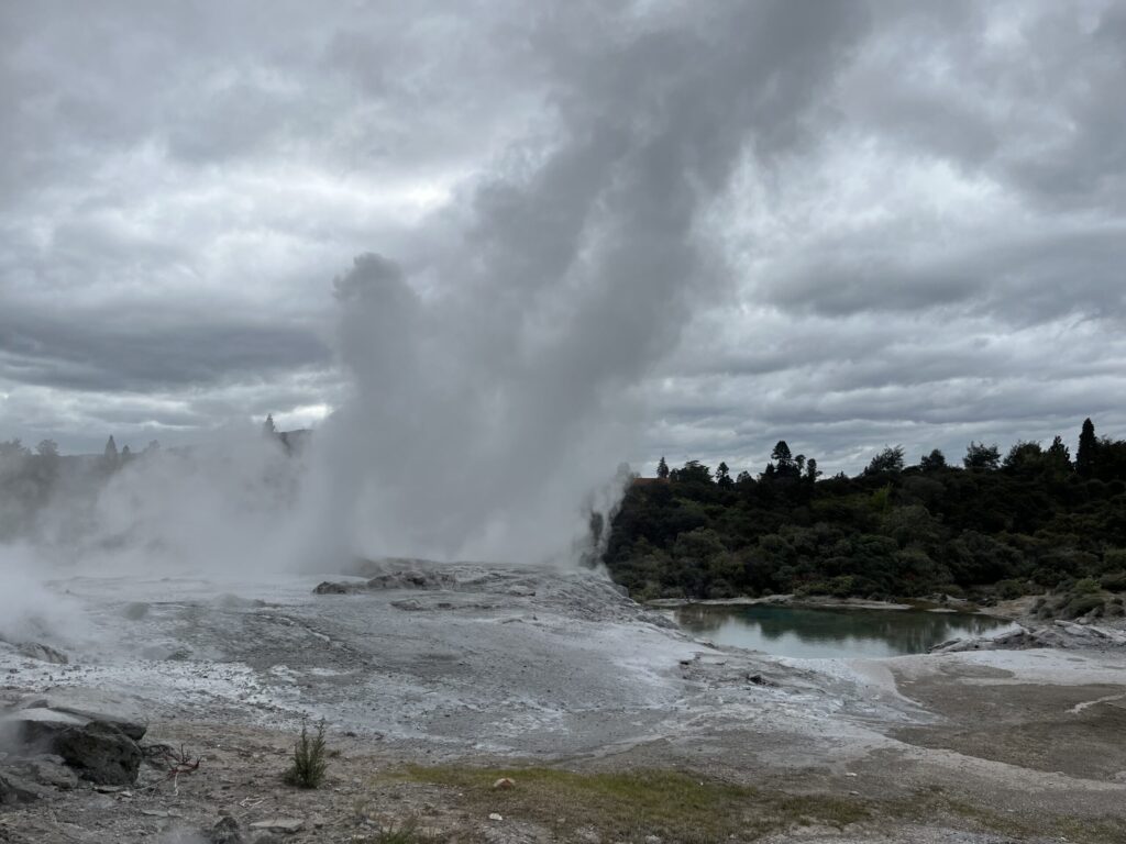 マオリ文化(伝統工芸の学校)から、キーウィバード(ニュージーランドに生息する羽がない鳥)、間欠泉まで案内してもらえます。高さ20〜25mまで噴き上がる間欠泉は大迫力で地球の自然エネルギーを感じることができるでしょう。自然現象のため不規則ですが一日に約20回ほど噴き上がり1回15~30分程度上がり続ける傾向です。マオリ文化と間欠泉・地熱地帯のエネルギーを感じられます。